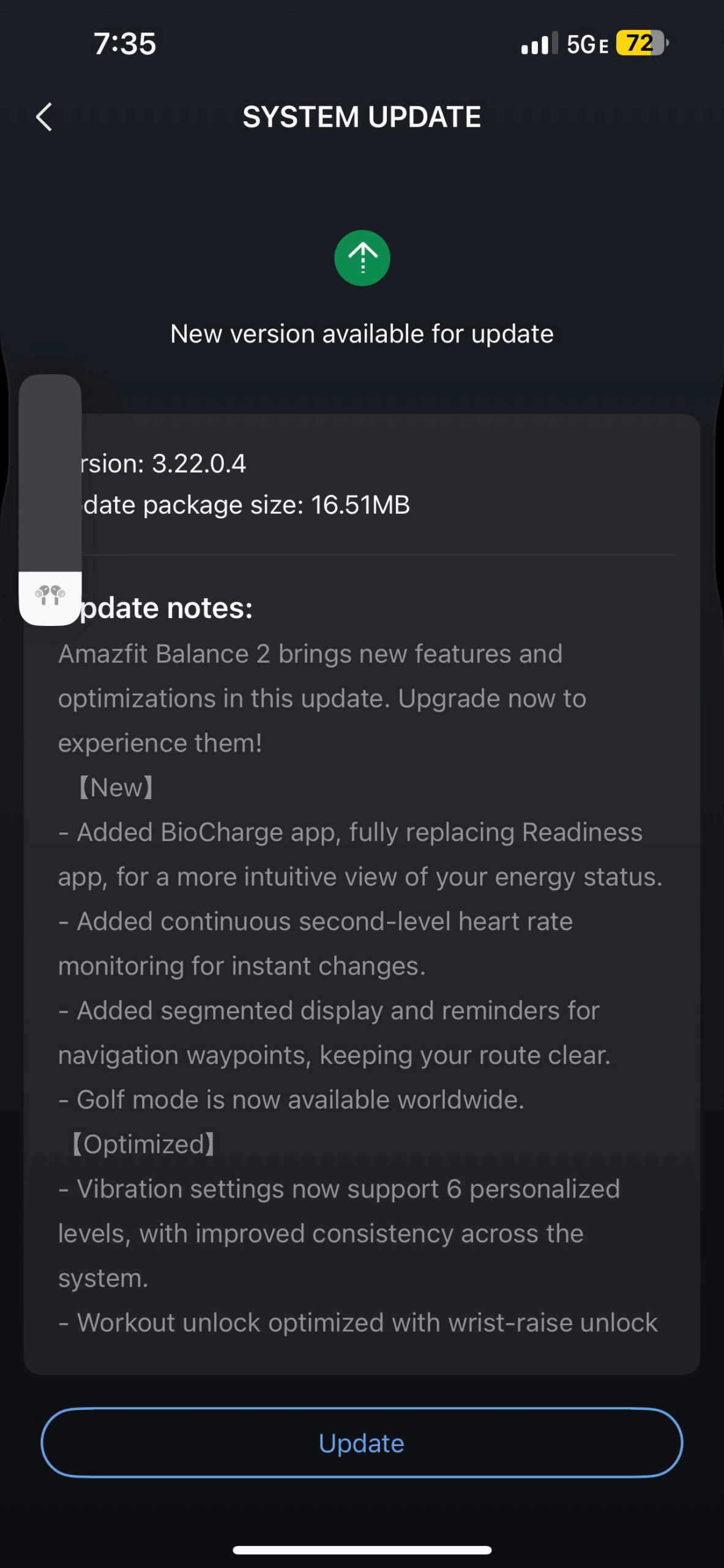 Il avait promis à l’occasion de la présentation d’Amazfit Balance 2 que la fonction de biocharge, au début exclusive d’Amazfit Helio Stap, aurait été disponible pour lui et était également de discours parce que la mise à jour d’aujourd’hui vient précisément dans le but de l’ajouter, ainsi que d’améliorer les algorithmes et d’optimiser les parties du système. La mise à jour est en déploiement à partir d’aujourd’hui avec le nombre de version 3.22.0.4 et nécessite le téléchargement de 16,51 Mo, nécessaire pour apporter toutes les modifications mentionnées dans Changelog Ci-dessous: