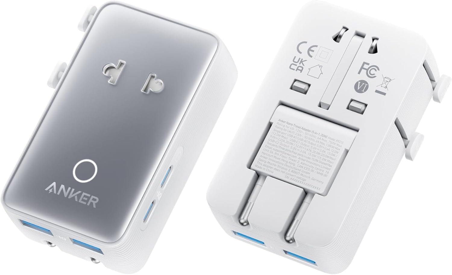 Si vous avez moins d’espace disponible, vous pouvez vous orienter sur Anker Compact Power Cube qui comprend deux ports USB-A et deux ports USB, avec une prise de courant qui peut être pliée et une puissance totale sur 20 watts, idéale pour ceux qui voyagent avec peu de bagages.