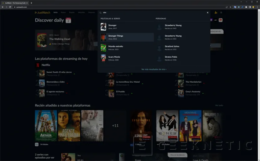 Pour cela, nous pouvons Aidez beaucoup de Justwatch et sa liste de surveillanceVoyons comment fonctionne cette plate-forme simple.