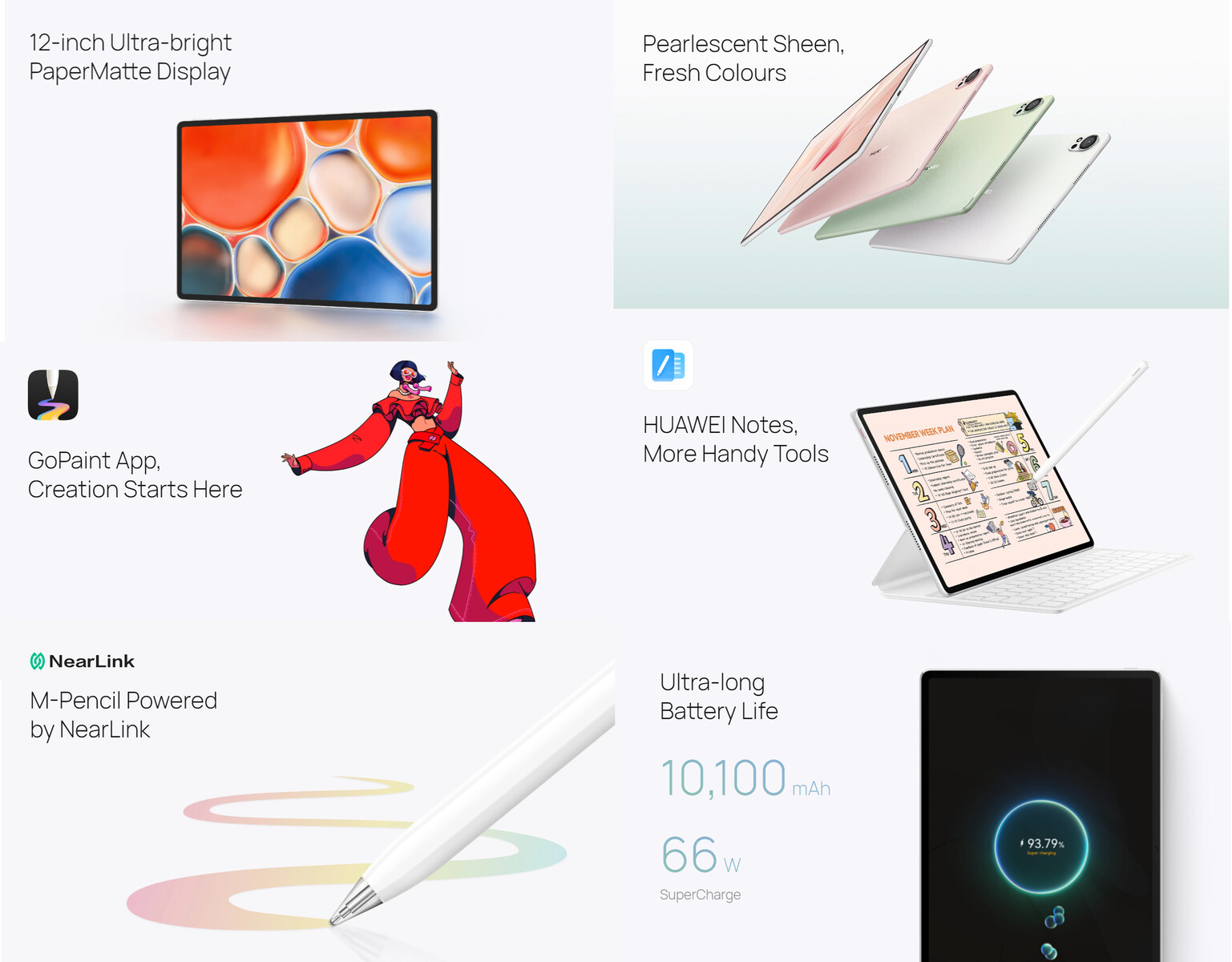 Huawei déclare que Papematte contribue également à la réduction de la fatigue visuelle et améliore la lisibilité dans des environnements externes. L’écran est également compatible avec le Huawei M-P-Crayl Pro, offrant une expérience similaire à celle de l’écriture papier.