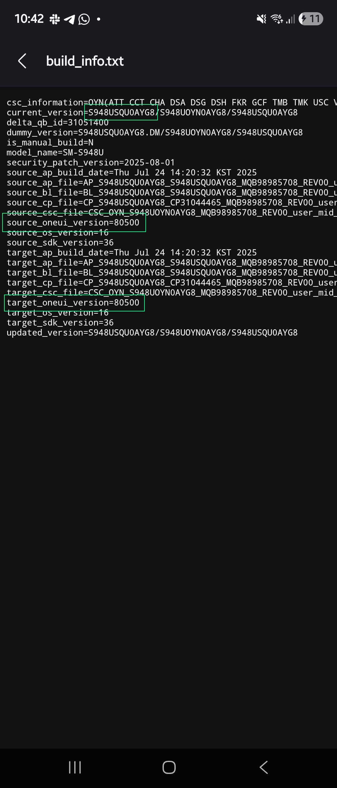 À ces heures, d’autres indications apparaissent dans ce sens: les collègues de Samobile Ils ont réussi à mettre la main sur le premier micrologiciel pour Galaxy S26 Ultra (version S948USqu0ayg8), et les informations sur la construction confirment que la version est basée sur Android 16 et une UI 8.5. Comme nous pouvons le voir dans l’image ci-dessous, c’est la première fois que celui de l’UI 8.5 est officiellement mentionné.