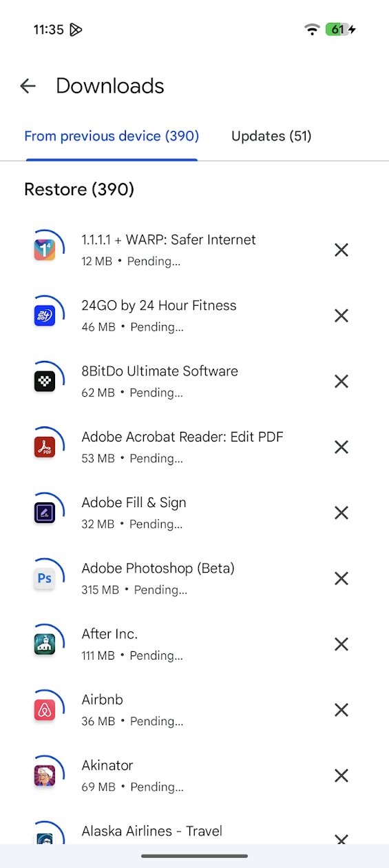 Comme indiqué par un utilisateur sur le réseau social X (Ex Twitter), la section dédiée aux téléchargements dans le Google Play Store est enrichie d’une subdivision plus claire: les applications pendant la restauration sont maintenant collectées dans la catégorie De l’appareil précédenttandis que les mises à jour continuent d’être présentées dans la section homonyme.