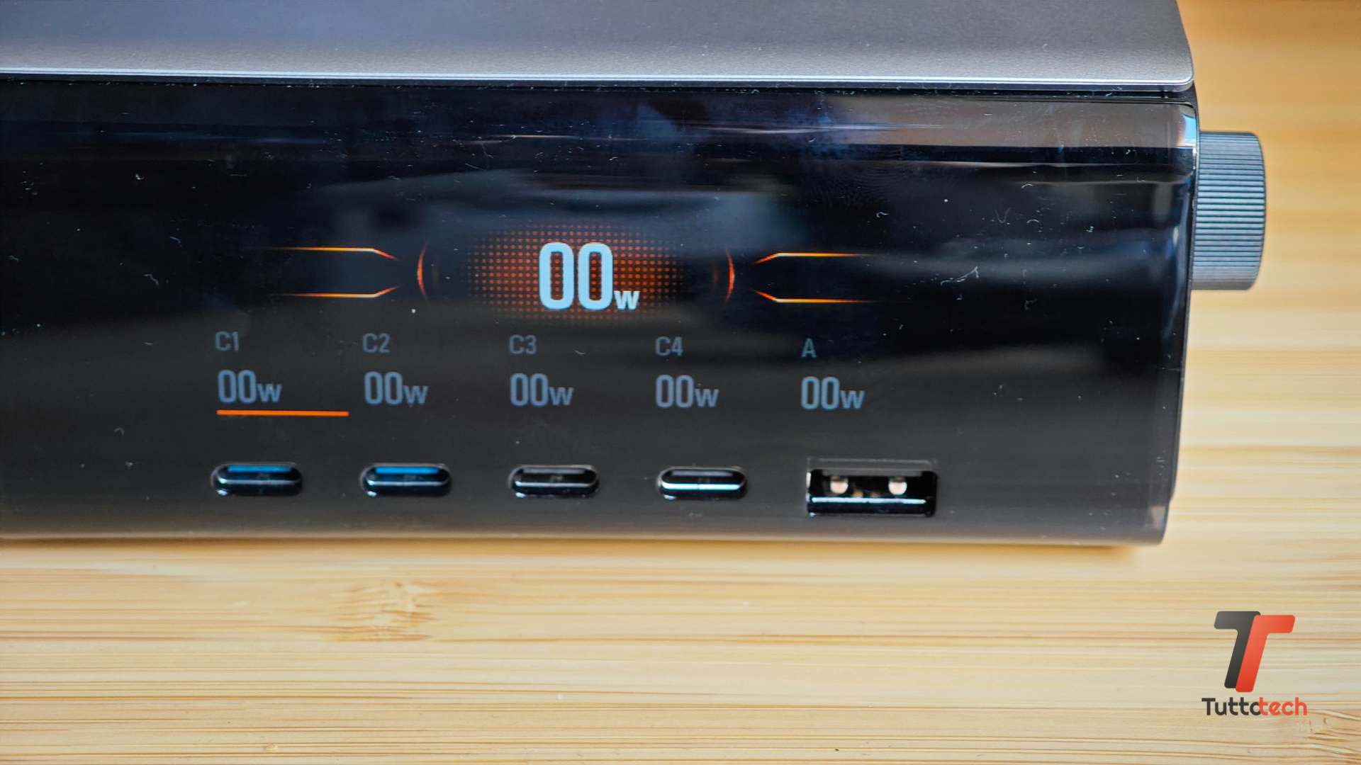 L’écran LCD couleur affiche la puissance de sortie sur chaque porte, en appuyant sur la roue, il est possible d’avoir les détails sur la tension et le courant payé et entrez le menu des paramètres. Comme pour la banque d’alimentation, dans ce cas, il est également possible d’utiliser l’application Companion pour afficher toutes les données de manière plus pratique et modifier les paramètres relatifs au thème de l’écran, au délai d’expiration et à d’autres informations.