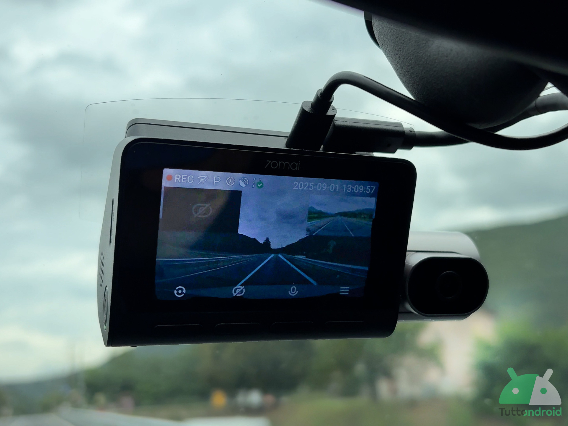 L’expérience d’utilisation avec le T800 70mai est d’un niveau très élevé, en particulier pour deux aspects fondamentaux. Le premier est la qualité vidéo: les caméras avant et arrière garantissent des enregistrements dans HDR 4K, soutenus par d’excellents capteurs et par le propriétaire des algorithmes de 70mai pour le tournage dans des conditions de faible luminosité. En particulier, les technologies de la solution et de la vision de la nuit nocturne optimisent dynamiquement et réduisent les réflexions, offrant des images nettes de jour et de nuit. La caméra interne convainc également grâce aux quatre LED infrarouges de 940 nm, capables de retourner des enregistrements clairs en noir et blanc même dans l’obscurité complète.