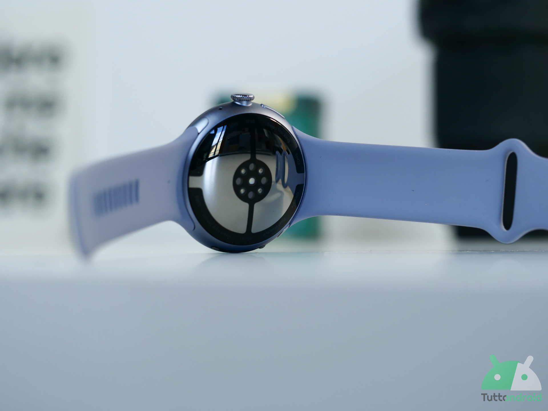C’est une smartwatch résistante à l’eau avec certification IP68 et jusqu’à 5 ATM, mais les matériaux ne changent pas par rapport à l’année dernière : on retrouve du Gorilla Glass 5 (pas de saphir, qui avec cette courbure aurait été compliqué à adopter) et un boîtier en aluminium 100% recyclé. Google n’embrasse donc pas les matériaux plus « nobles » comme l’acier ou le titane, désormais répandus dans le monde des wearables.