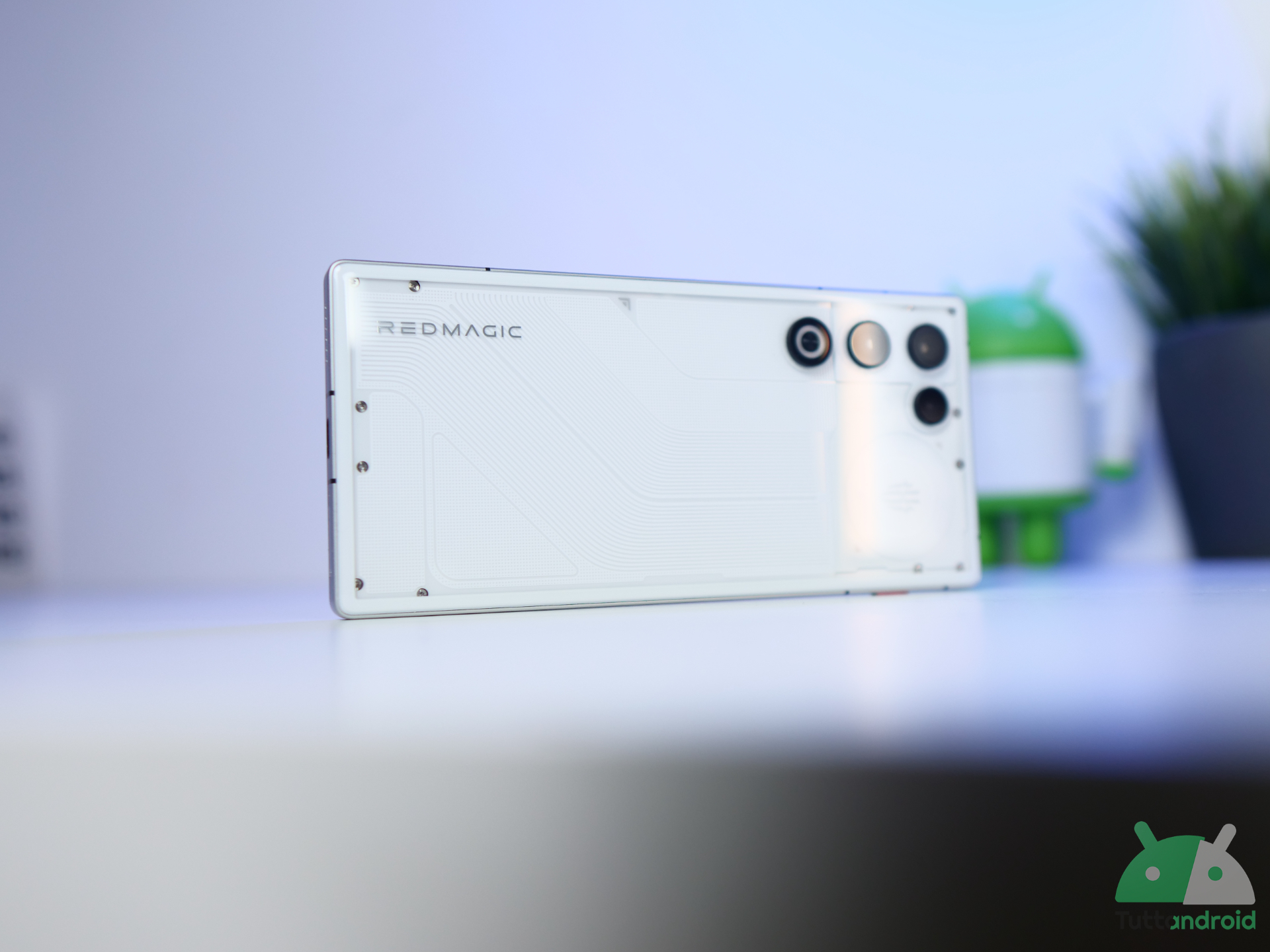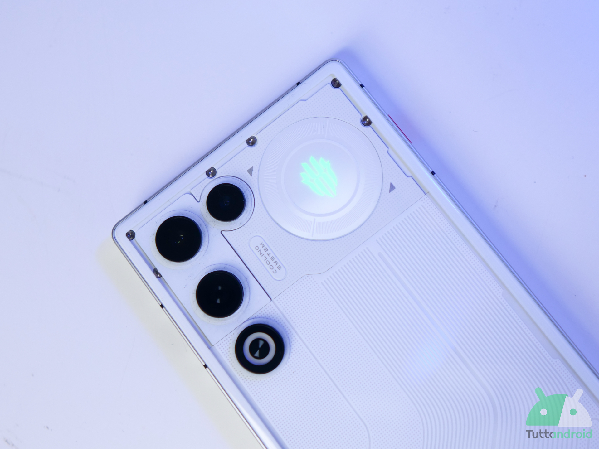 Deux joyaux qui méritent d’être mentionnés : les LED RVB personnalisables, aussi bien celle avec le logo REDMAGIC que celle intégrée au ventilateur, configurables de mille manières différentes pour les notifications, les appels ou simplement pour créer une ambiance lors des sessions de jeu. Ensuite, il y a la Magic Key, un bouton physique moleté rouge sur le cadre qui peut être programmé pour différentes fonctions : nous l’avons réglé sur silencieux et ce qui est intéressant c’est qu’il fonctionne également avec l’écran verrouillé, avec un retour haptique différent pour chaque réglage.