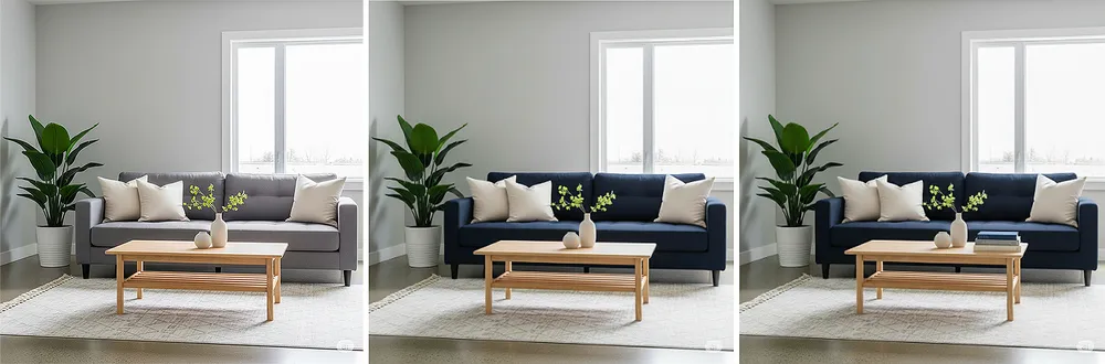 - Invite 2 (EDIT): Modifie la couleur du canapé avec un bleu marine;
