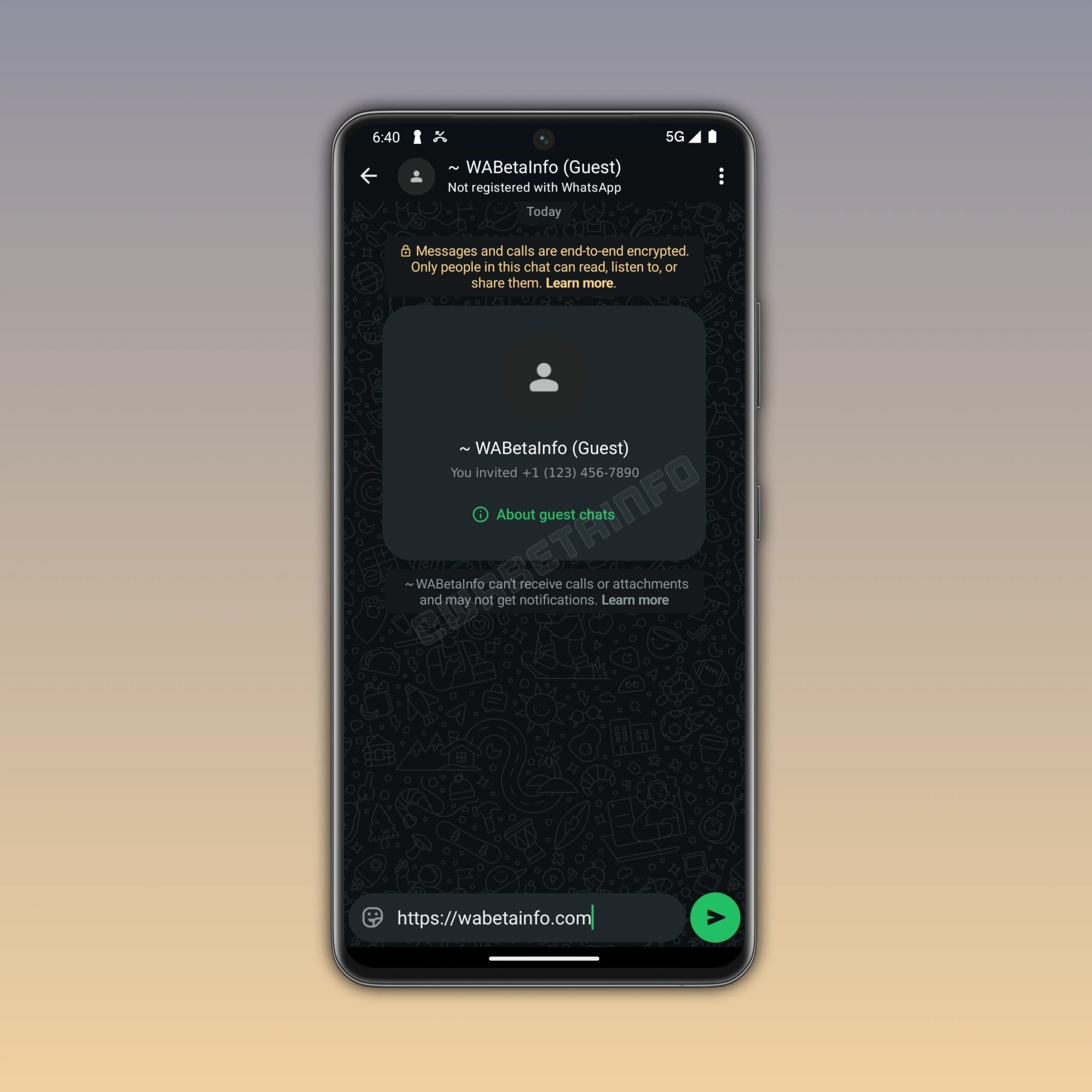 Il est possible de démarrer une conversation invité uniquement avec un autre utilisateur, éliminant ainsi complètement la possibilité de démarrer des discussions de groupe, et les fonctions typiques de WhatsApp telles que les appels vocaux, les appels vidéo et le partage de contenu multimédia ne sont pas prises en charge. Enfin, il n’est pas possible d’envoyer des autocollants ou des messages vocaux, ce qui fait de la messagerie texte la seule option possible pour les discussions avec les invités.